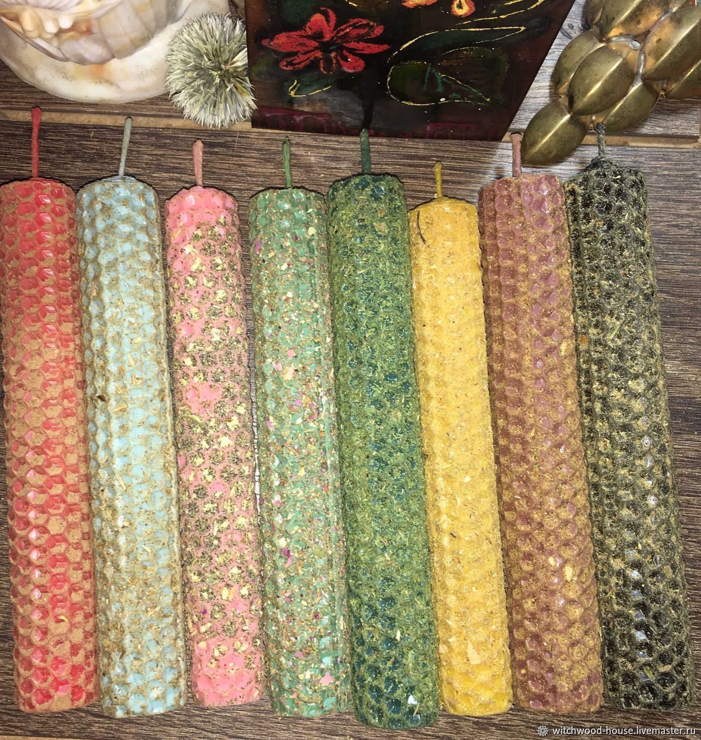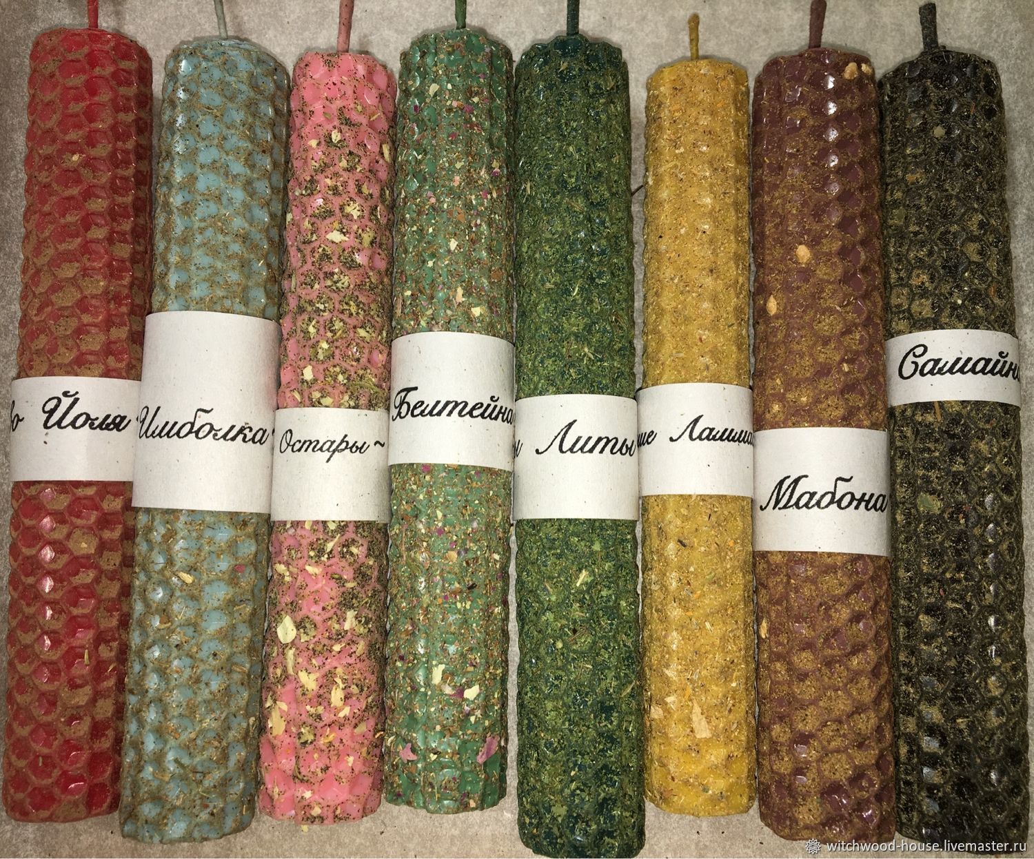 Этот потрясающий набор из 8 магических свечей "Колесо Года" специально создан для празднования, чествования цикла праздников/саббатов Колеса Года. Каждая свеча посвящена одной из вех Колеса Года. Длина 13 см; диаметр: 2 см; материал: вощина натуральная высшего сорта, смесь из личных рецептов мастера, соответствующая каждому из праздников Колеса.